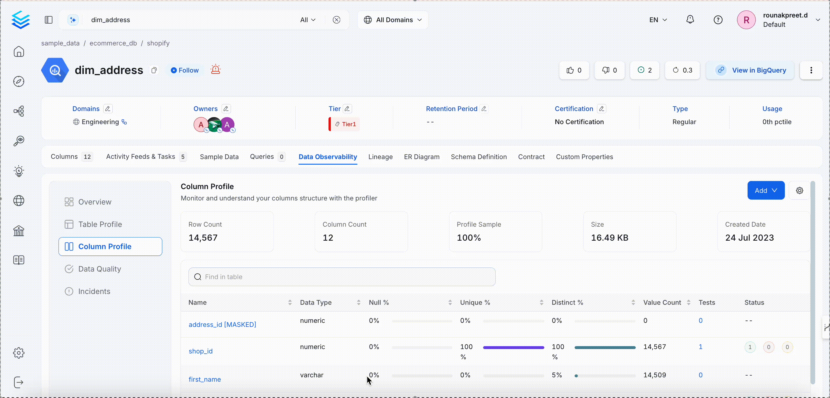 Tests applied on top of Column metrics. Here is the list of all column tests:
